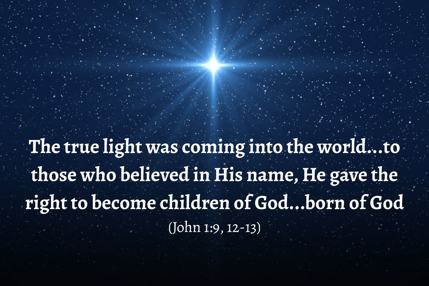 John says the true light that gives light to everyone was coming into the world. He came into His world for you, to bring you out of your spiritual darkness and into His wonderful light. If you'll believe in His name today and in His finished work on the cross to forgive your sins, you too will be born of God in that moment and made into His child, belonging to His family.